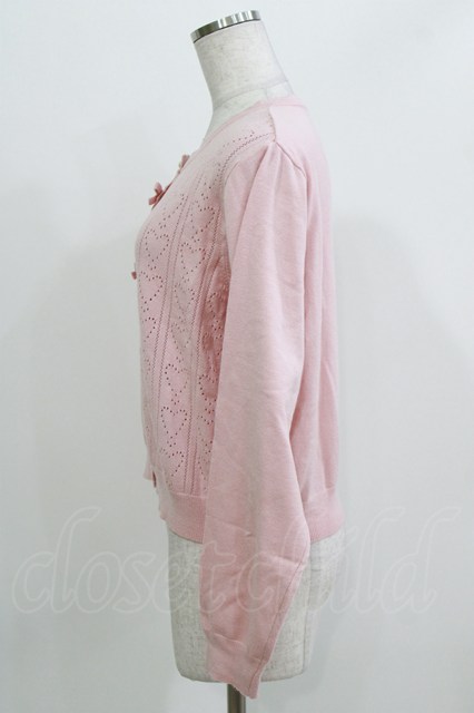 m petit by misako / AM*ハート透かしニットカーディガン LL ピンク H-26-03-13-1062-LO-TO-NS-ZH