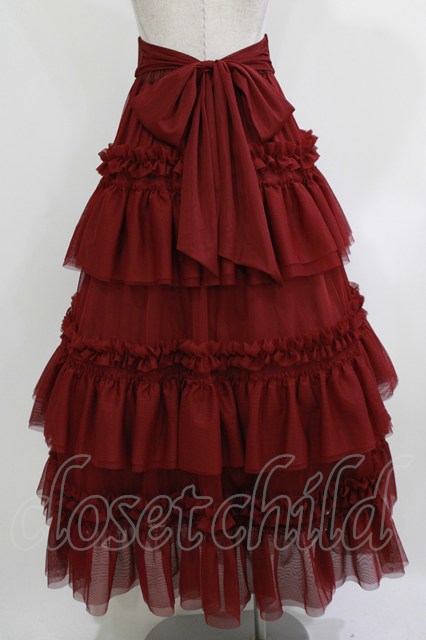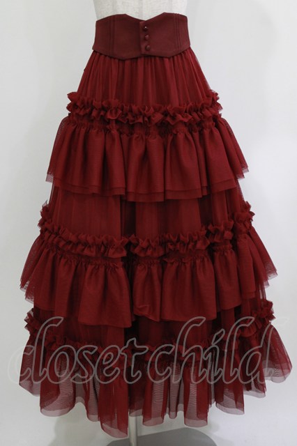 Amavel / ウエストコルセット風チュールロングスカート M ワイン H-26-03-13-1017-CA-SK-NS-ZH