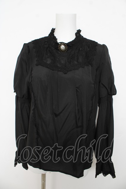 axes femme kawaii / パールブローチ付ブラウス M 黒 Y-26-03-13-011-AX-BL-SZ-ZY [2100070000065473-Y-26-03-13-011-AX-BL-SZ-ZY]