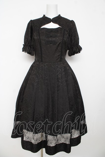 axes femme kawaii / チャイナ釦ジャガードワンピ M 黒 Y-26-03-13-107-AX-OP-SZ-ZY