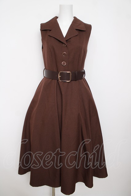 an another angelus / ベルト付きウールライク開衿ジレワンピース F ブラウン Y-26-03-13-122-CA-OP-SZ-ZY