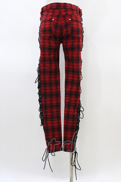 BANNED APPAREL / レースアップチェックパンツ M 赤 H-26-03-15-009-PU-PA-KB-ZH [2100030000089525-H-26-03-15-009-PU-PA-KB-ZH]