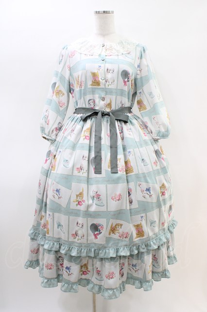 Emily Temple cute / Kitten Stamp Collectionロングワンピース ミント H-26-03-15-016-ET-OP-KB-ZH [2100030000076622-H-26-03-15-016-ET-OP-KB-ZH]