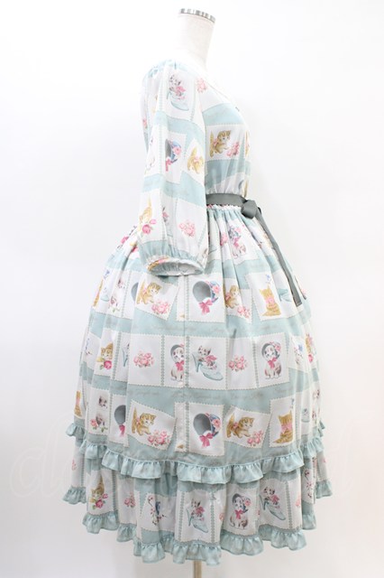 Emily Temple cute / Kitten Stamp Collectionロングワンピース ミント H-26-03-15-016-ET-OP-KB-ZH