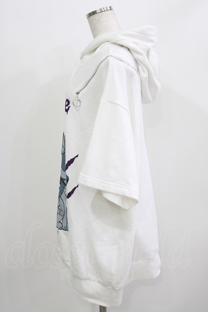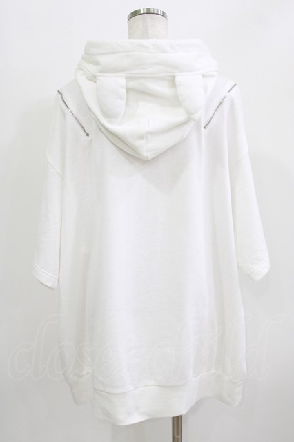 Amilige / NightmareWolf耳付き半袖ZIPパーカー ホワイト H-26-03-14-1029-PU-TO-KB-ZH [2100030000089280-H-26-03-14-1029-PU-TO-KB-ZH]