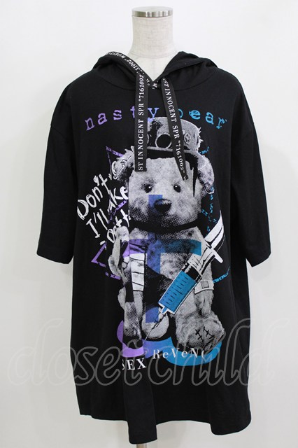 SEX POT ReVeNGe / プリント半袖プルパーカー 黒 H-26-03-14-1055-SP-TO-KB-ZH