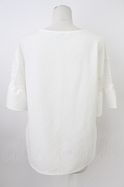 axes femme / 袖レース切替カットプルオーバー ホワイト T-26-03-17-002-AX-TO-SA-ZT