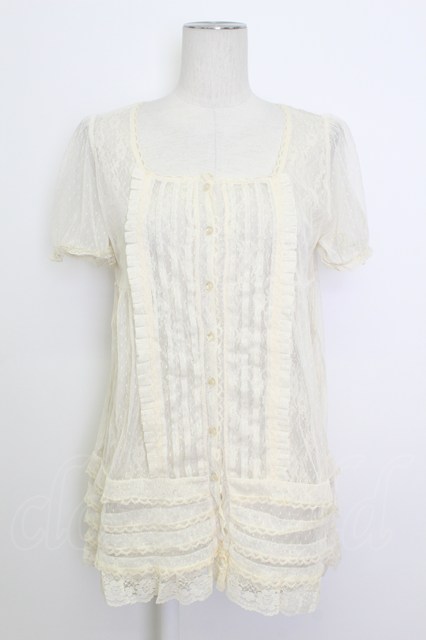 axes femme / 総レース半袖ブラウス M キナリ T-26-03-17-007-AX-BL-SA-ZT