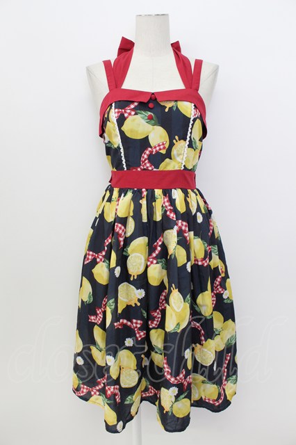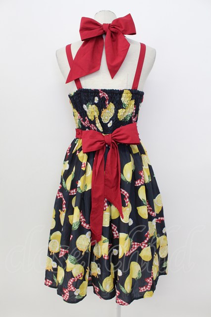 axes femme kawaii / ストライプレモン柄ジャンスカ 黒X赤X白X黄色 T-26-03-17-026-AX-OP-SA-ZT