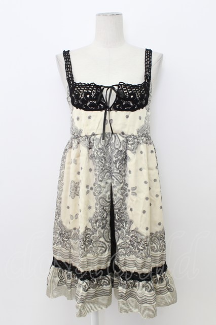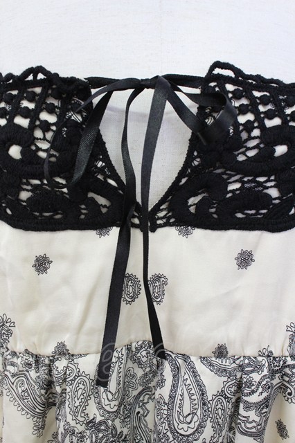axes femme / ニットレースペイズリープリントチュニック アイボリーX黒 T-26-03-17-035-AX-OP-SA-ZT