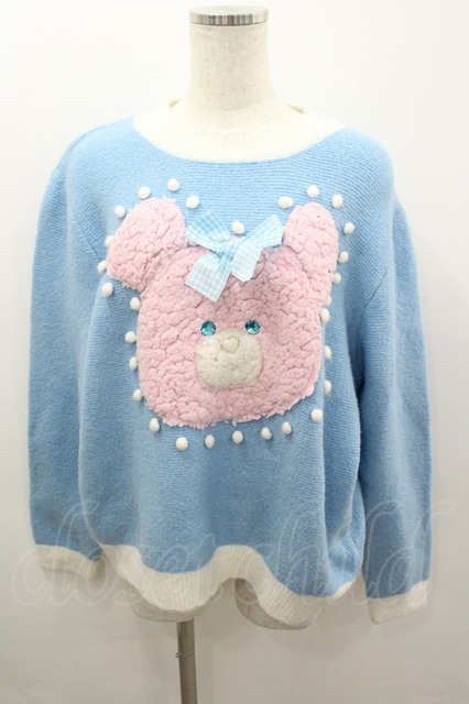 Nile Perch / リボンくまニットトップス 青XピンクX白 I-26-03-12-009-LO-TO-SA-ZI [2100060000052389-I-26-03-12-009-LO-TO-SA-ZI]