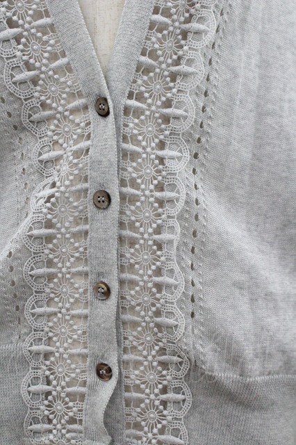 Jane Marple Dans Le Salon / 透かしレースデザインニットカーディガン グレー I-26-03-12-014-JM-TO-SA-ZI