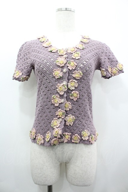WONDERFUL WORLD / フラワーモチーフ半袖ニットカーディガン ラベンダー I-26-03-12-040-LO-TO-SA-ZI [2100060000051360-I-26-03-12-040-LO-TO-SA-ZI]