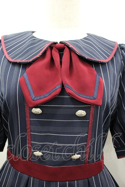 Amavel / ダブルボタンストライプシャツワンピース ネイビー I-26-03-12-050-CA-OP-SA-ZI