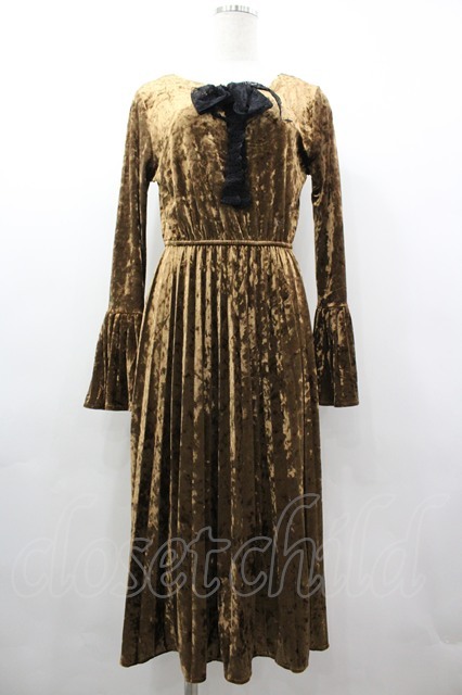 MARBLE / アンティークブローチ付きベルスリーブワンピース ブラウンX黒 I-26-03-12-061-GO-OP-SA-ZI [2100060000048483-I-26-03-12-061-GO-OP-SA-ZI]