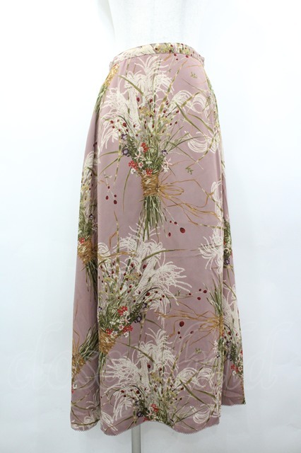 KANEKO ISAO / すすきブーケ柄スカート ピンク I-26-03-12-084-EL-SK-SA-ZI