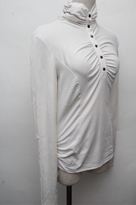 Ozz oneste / ギャザーハイネックカットソー 白 S-26-03-12-016-OO-TO-AS-ZS
