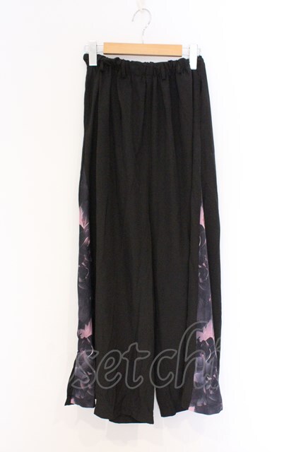NieR Clothing / サイド柄切替ワイドパンツ F ブラック×ピンク花柄 O-26-03-13-010-PU-PA-OW-OS