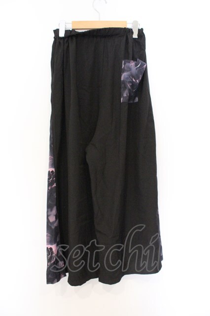 NieR Clothing / サイド柄切替ワイドパンツ F ブラック×ピンク花柄 O-26-03-13-008-PU-PA-OW-OS