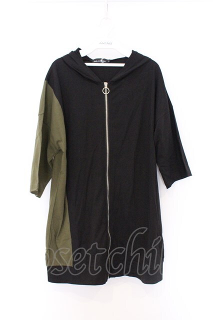 NieR Clothing / 刺繍入りバイカラーパーカー F ブラック×カーキグリーン O-26-03-13-056-PU-TO-OW-OS [2100080000076418-O-26-03-13-056-PU-TO-OW-OS]