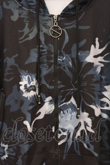 NieR Clothing / 転写ZIPパーカー F ブラック花柄 O-26-03-13-027-PU-TO-OW-OS