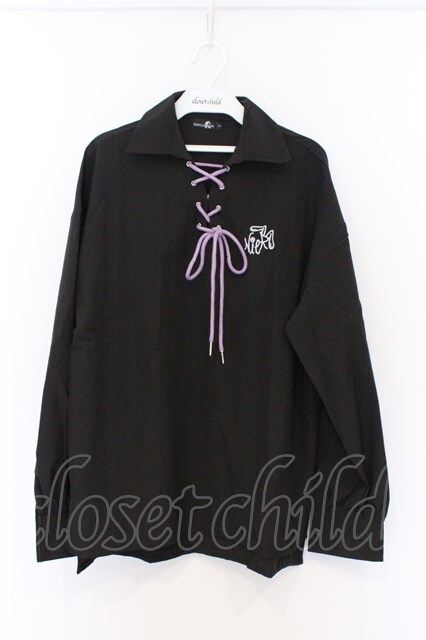 NieR Clothing / 刺繍入りレースアップシャツ F ブラック×パープル O-26-03-13-046-PU-BL-OW-OS