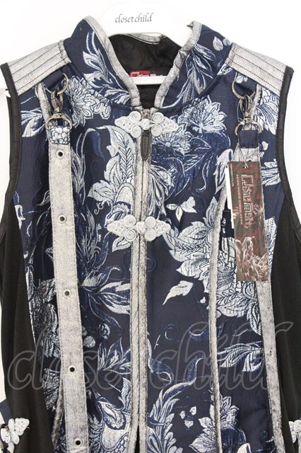 Qutie Frash / 後ろロングチャイナベスト ネイビー×シルバー O-26-03-13-003-QU-TO-OW-OS [2100080000076718-O-26-03-13-003-QU-TO-OW-OS]