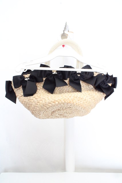 axes femme / リボン使いカゴバッグ ナチュラル×クロ O-26-03-14-029-AX-BG-OW-OS