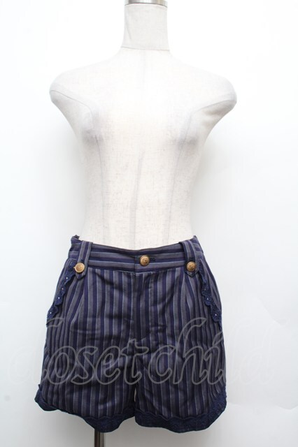 axes femme / ストライプショートパンツ 紺xグレー S-26-03-14-055-AX-PA-AS-ZS