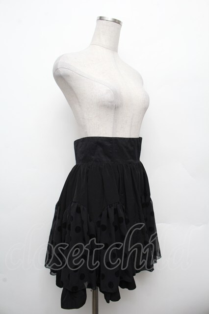 BPN / フロッキードットスカート 黒 S-26-03-14-057-GO-SK-AS-ZS