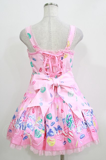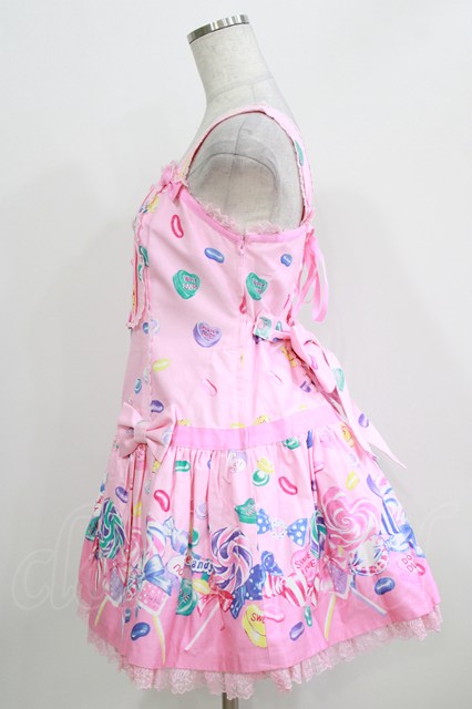 Angelic Pretty / Candy Treat ローウエストジャンパースカート Free ピンク H-26-03-16-026-AP-OP-NS-ZH