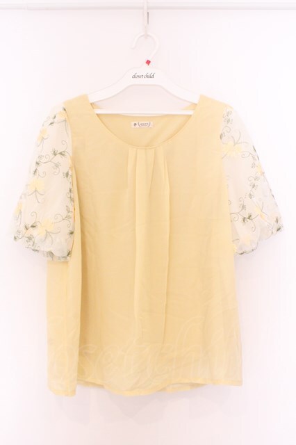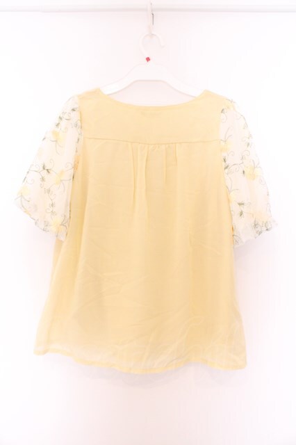 axes femme / 袖チュール刺繍トップス M イエロー O-26-03-14-1083-AX-TO-IG-OS [2100080000077121-O-26-03-14-1083-AX-TO-IG-OS]