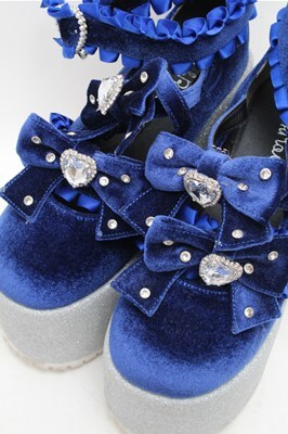Ank Rouge / キラキラビジューベロアリボン厚底シューズ LL ブルー S-26-03-14-1001-CA-SH-HR-ZS