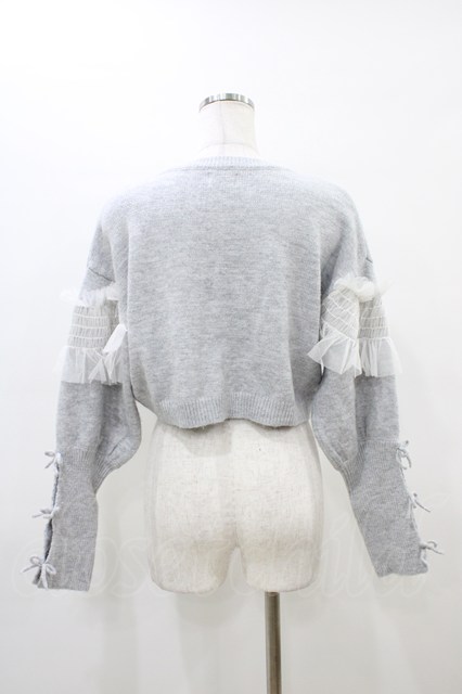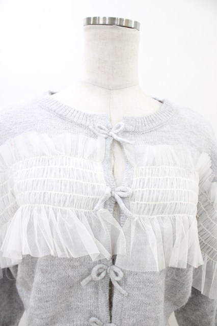 merry jenny / シャーリングチュールニットカーディガン グレー H-26-03-17-1050-LO-TO-KB-ZH
