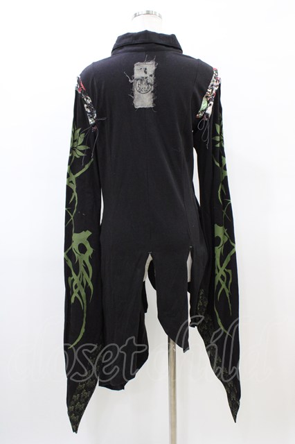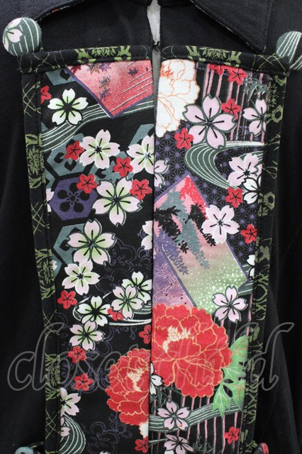 gouk / 和柄切替アシメロングカーディガン 黒 H-26-03-17-1054-GO-TO-KB-ZH [2100030000089354-H-26-03-17-1054-GO-TO-KB-ZH]