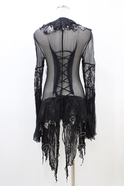 h.NAOTO / レースアップシースルーカーデ 黒 H-26-03-17-1047-HN-TO-AK-ZH