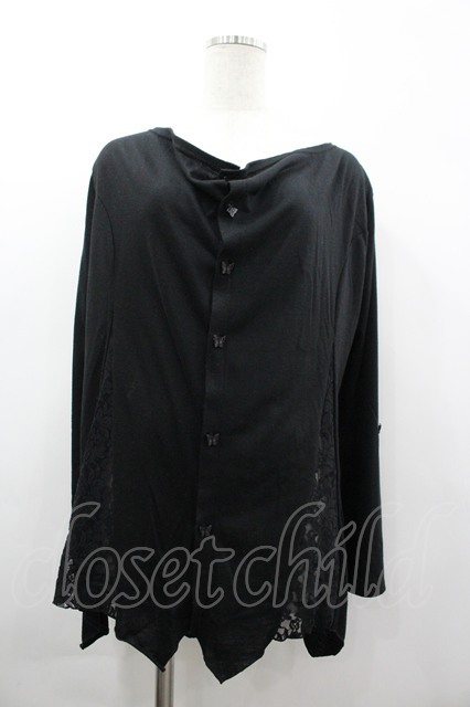 ALGONQUINS / 蝶ボタンレース切替カーディガン F 黒 I-26-03-14-026-AL-TO-TE-ZI [2100060000052826-I-26-03-14-026-AL-TO-TE-ZI]