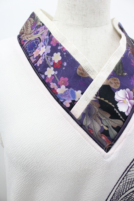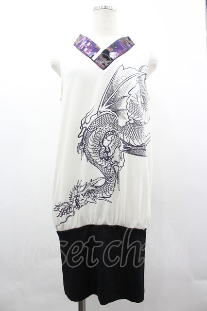 Qutie Frash / 着物Vネック龍プリントノースリーブトップス 白Xパープル I-26-03-14-056-QU-TO-SA-ZI