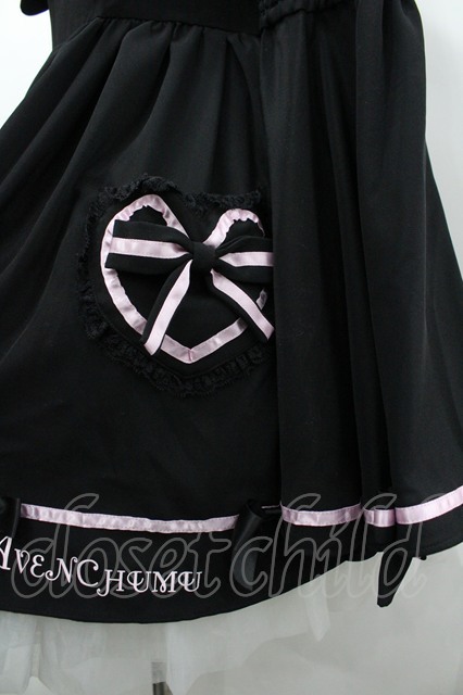 AVENCHUMU / Melty bicolor ribbon flare sleeve one piece 黒Xピンク I-26-03-14-066-LO-OP-SA-ZI [2100060000043834-I-26-03-14-066-LO-OP-SA-ZI]