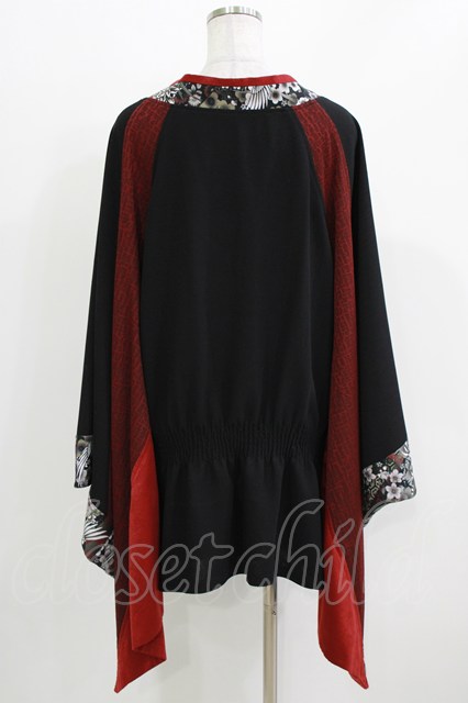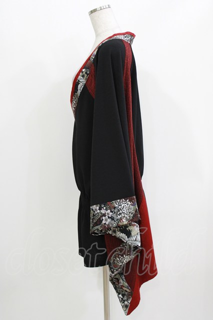 Qutie Frash / リボン帯付き着物チュニック 黒×赤 H-26-03-18-036-QU-TO-KB-ZH [2100030000068394-H-26-03-18-036-QU-TO-KB-ZH]