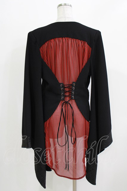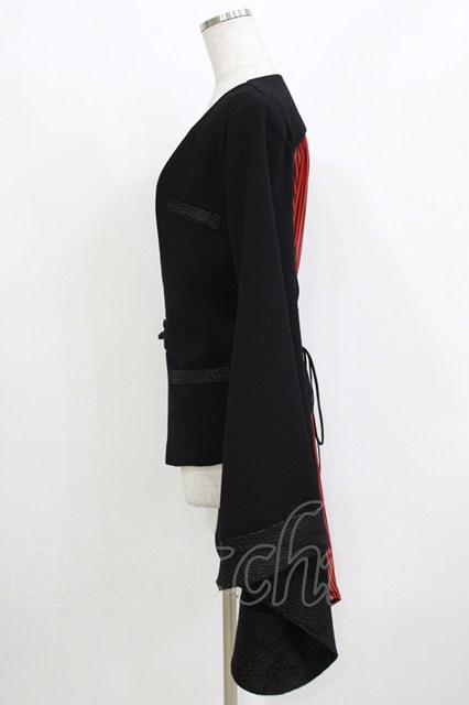 Qutie Frash / 着物袖ジャケット 黒×黒赤ストライプ H-26-03-18-028-QU-JA-KB-ZH [2100030000067102-H-26-03-18-028-QU-JA-KB-ZH]