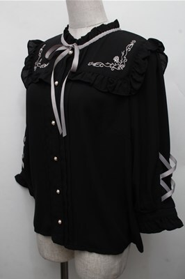 axes femme POETIQUE / ローズ刺繍レースアップブラウス 黒 S-26-03-15-034-AX-BL-HR-ZS