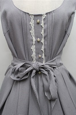 axes femme / ギンガムチェック裾刺繍ワンピース 黒x白 S-26-03-15-042-AX-OP-HR-ZS