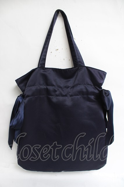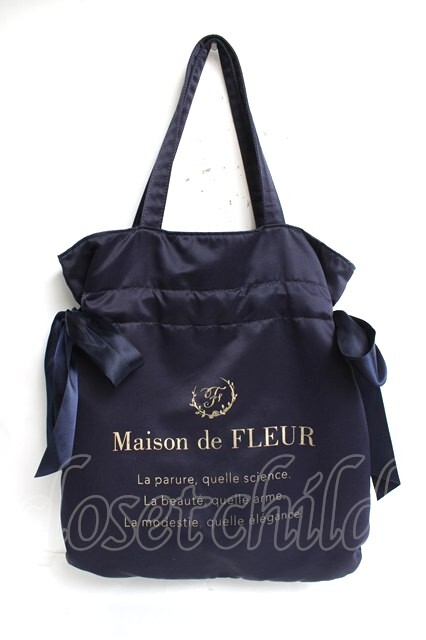 Maison de FLEUR / ダブルリボンギャザートートバッグ F ネイビー Y-26-03-16-051-LO-BG-SZ-ZY
