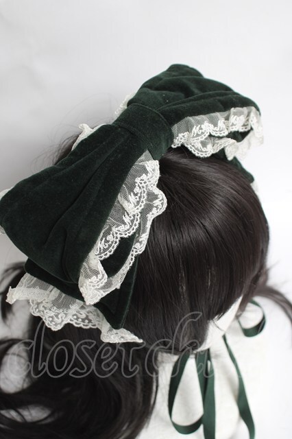 metamorphose / 別珍リボンヘッドドレス グリーン Y-26-03-16-072-ME-AC-SZ-ZY