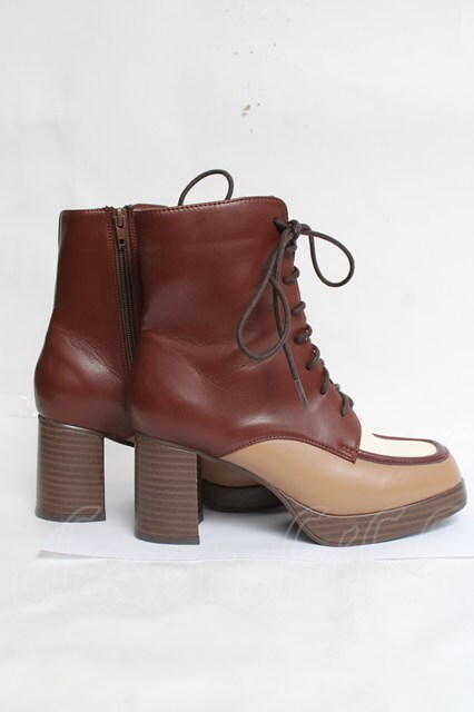 axes femme / 配色レースアップブーツ M 茶 Y-26-03-16-084-AX-SH-SZ-ZY