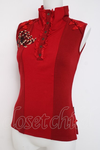 Ozz On / 菊刺繍ハイネックノースリーブトップス 赤 Y-26-03-16-119-OO-TO-SZ-ZY
