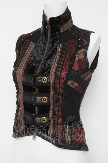 Ozz On / レジメ柄ZIPベスト ブラウン/黒 Y-26-03-16-120-OO-TO-SZ-ZY [2100070000064954-Y-26-03-16-120-OO-TO-SZ-ZY]