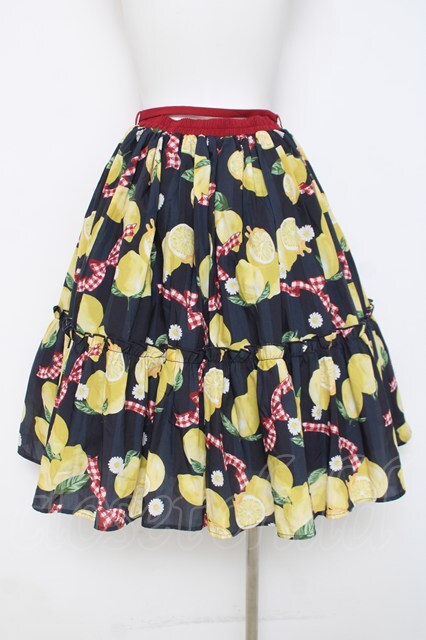 axes femme kawaii / ストライプレモン柄スカート M 紺 Y-26-03-16-203-AX-SK-SZ-ZY