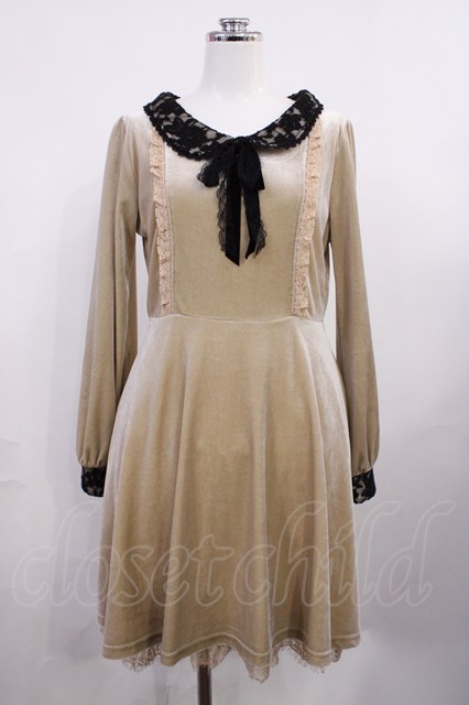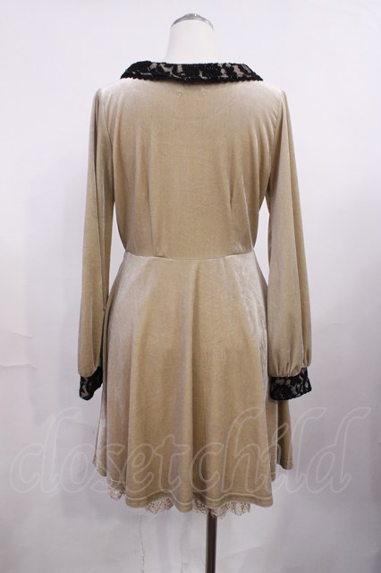 axes femme / 襟レース使いベロアワンピース M ベージュ H-26-03-16-1014-AX-OP-NS-ZH [2100030000089596-H-26-03-16-1014-AX-OP-NS-ZH]